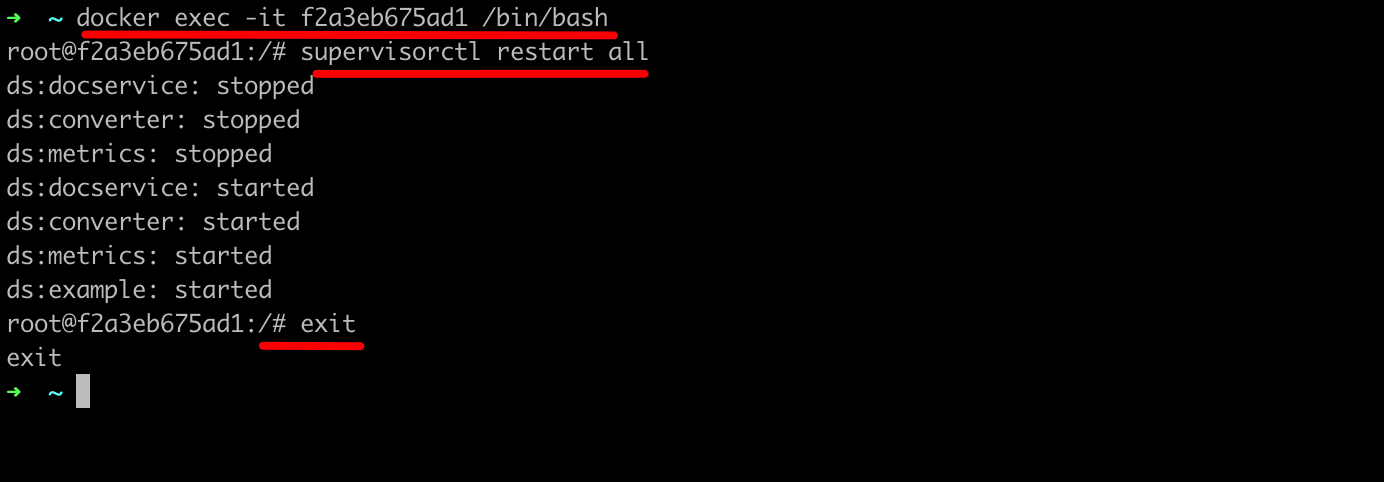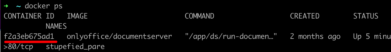 先执行 docker ps 查看 Onlyoffice 容器 ID: