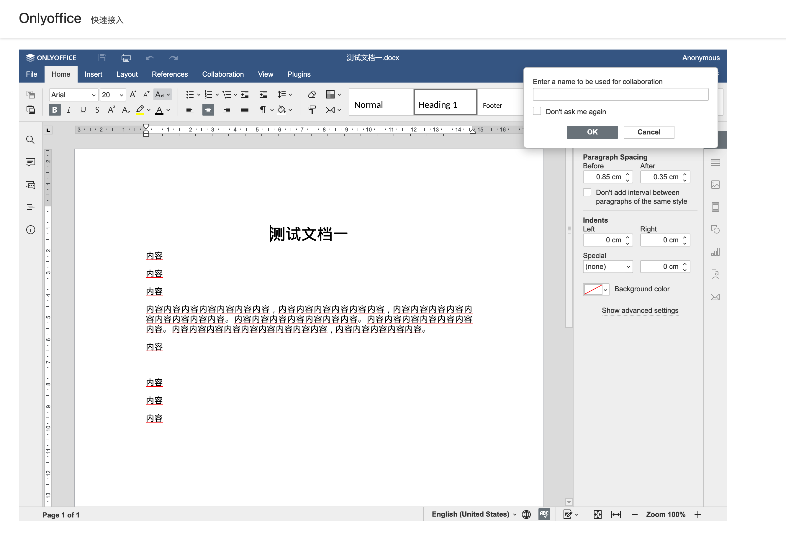 最后打开 http://127.0.0.1:3001/onlyoffice/document/quick-start 即可看到效果。