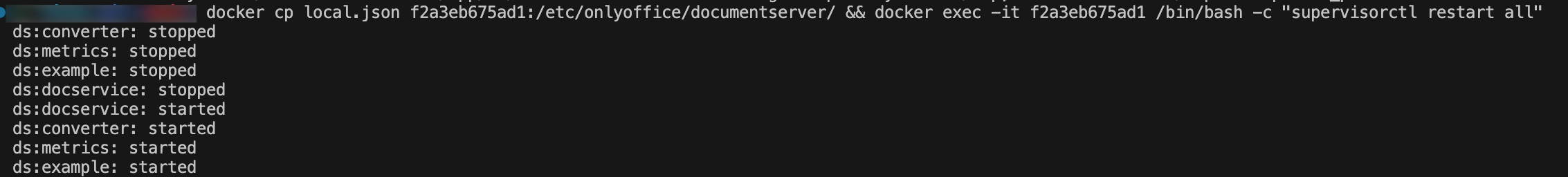1 | # 注意把 id 替换成自己的。这一步会覆盖 Onlyoffice 服务里面的默认配置,建议先做好备份方便恢复 |